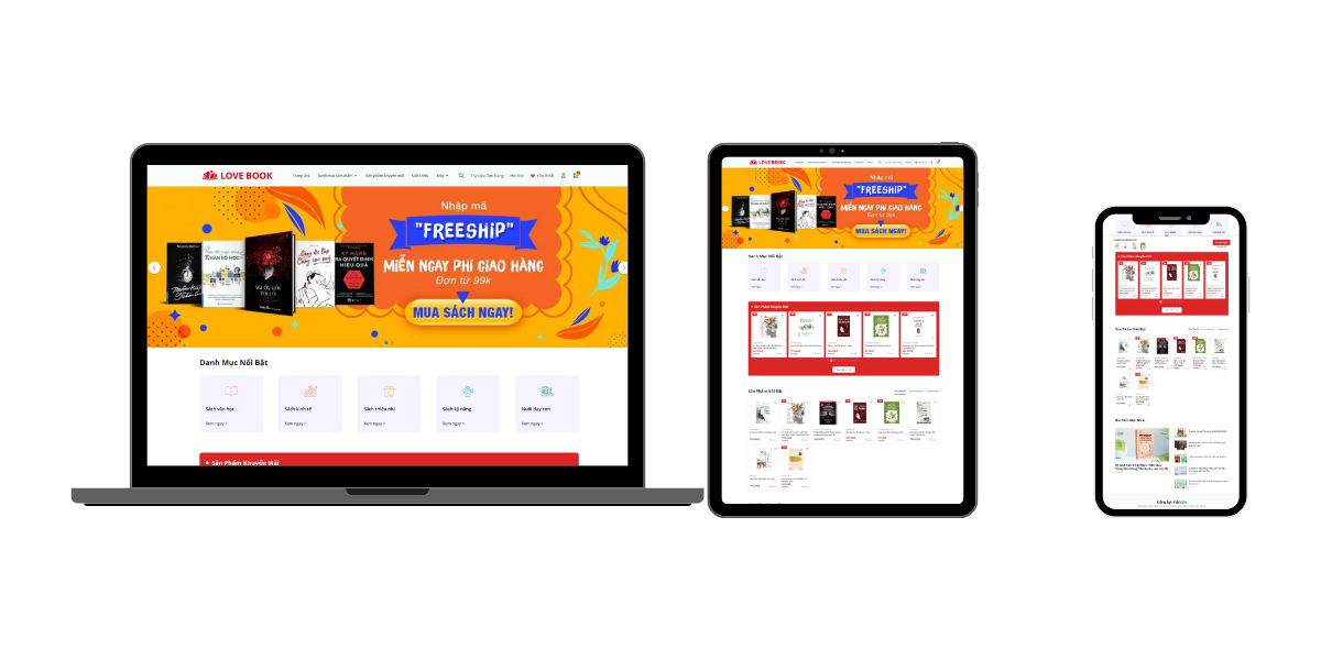 Với xu hướng mua sắm trên smartphone ngày càng phổ biến, Love Book được thiết kế responsive hoàn toàn, hiển thị mượt mà trên mọi thiết bị. Giao diện tải nhanh, thao tác đơn giản, nút thêm vào giỏ và thanh toán rõ ràng giúp tăng tỷ lệ chuyển đổi hiệu quả.